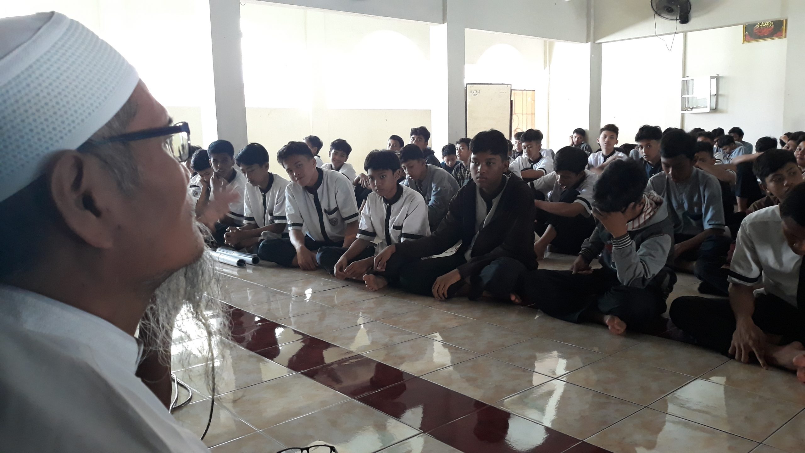 Hal Itu beliau sampaikan setelah sebuah pengantar sambutan dari kepala madrasah tsanawiyah, Ustadz Putut Tri Subekti. Pesan berikutnya adalah, “Orang-orang yang mengajarkan kebaikan didoakan mendapat Maghfirah dari Allah Ta’ala”, lanjut ustadz asal Lumajang itu.