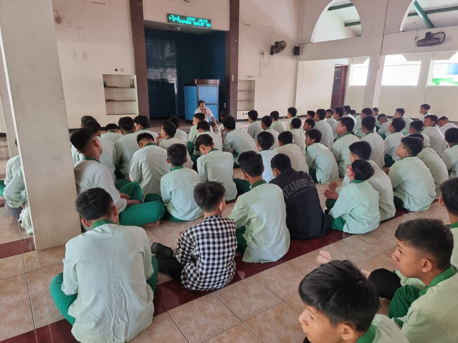 Santri putra sudah rapi berseragam sekolah. Disambut hangat di pagi ini Senin, 08 Mei 2023 berkumpul di masjid Pesantren Persis Putra, Ustadz Putut Tri Subekti, M. Pd. memberikan taujihnya dihadiri sejumlah asatidz dan pengasuh asrama. Antusias belajar kembali dibangun, mengingat agenda di bulan Mei ini di pekan akhir sudah mulai Imtihan Tahfidz Al Qur’an.