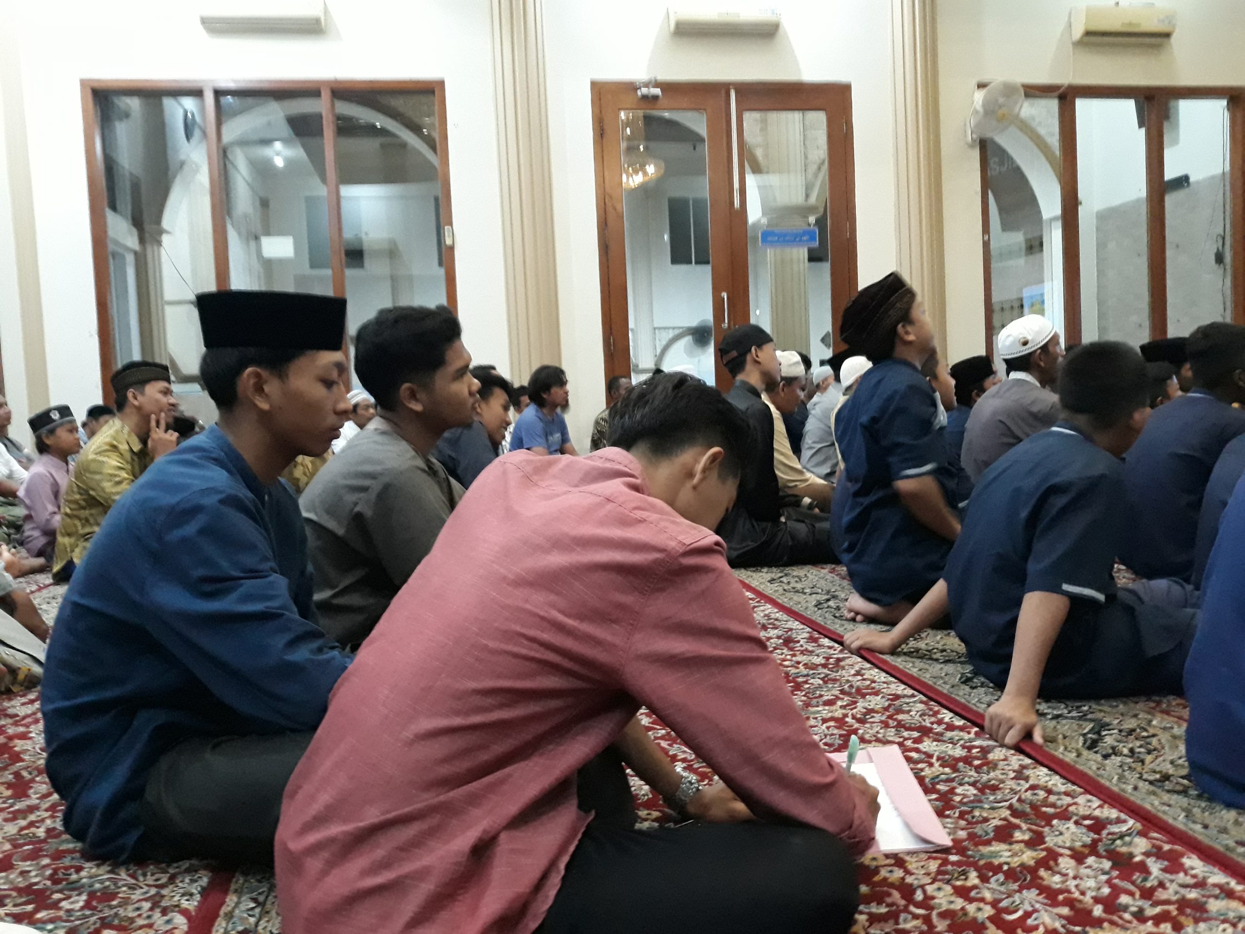 Para santri tentu sangat membutuhkan pengetahuan dan wawasan dari pengalaman beliau agar semakin memotivasi kesungguhan belajar. Bagas Aji Firmansyah, santri asal Lamongan nampak serius menyimak uraian Ustadz Fadlan Garamatan. Ia dan beberapa kawannya mendapat kesempatan mulia hadir di Majlis ilmu yang bermanfaat in syaa Allah.