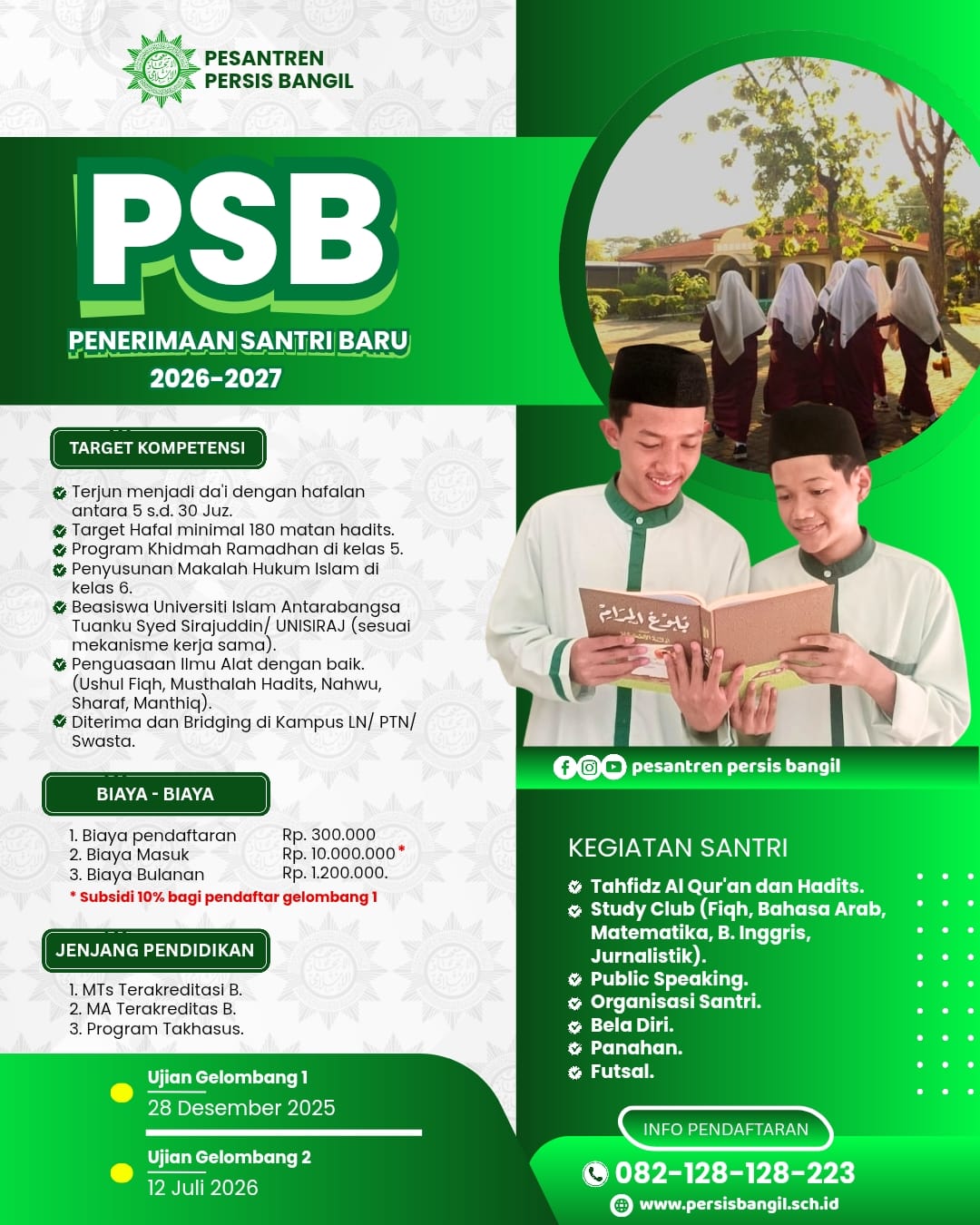 Kepada seluruh orang tua di manapun berada, jangan ragu mempercayakan pendidikan putra-putri Anda di Pesantren PERSIS Bangil.