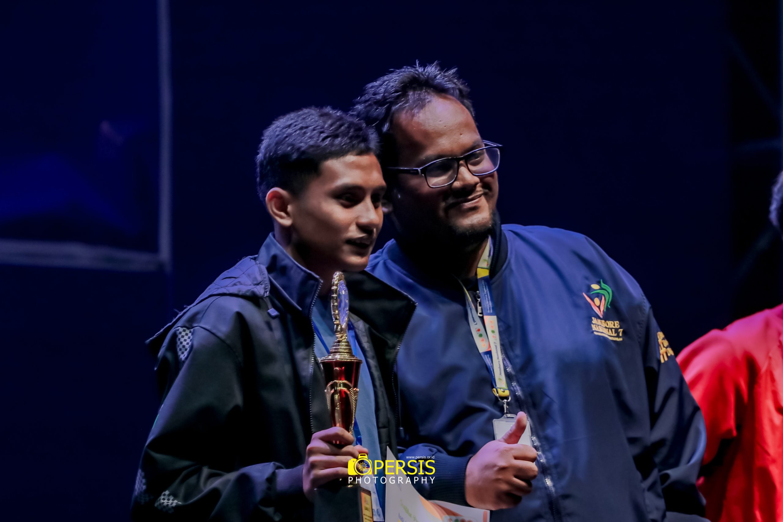 A. Ahmad Dzaki Ar Razy senyumnya mengembang. Ia menjadi salah satu peserta Pidato Bahasa Inggris di ajang Jamnas 7 Pelajar dan Mahasiswa Persis yang namanya disebut di panggung penutupan. Ia menempati prestasi terbaik kedua.
