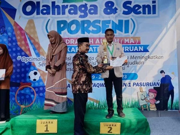 A. Ahmad Dzaki Ar Razy saat menerima anugrah juara dua Porseni Bidang Pidato Bahasa Inggris, Senin, 19 Juni 2023. Selamat.
