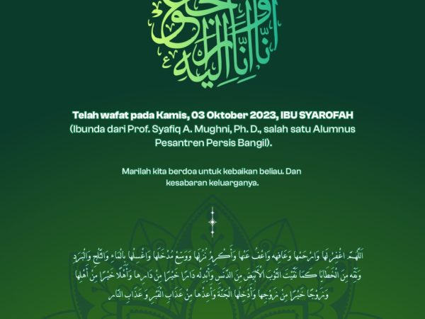 Bangil – Ucapan Takziyah mengalir dari sejumlah kalangan. Kabar wafat Ibu Syarofah tersiar melalui jejaring media sosial. Ibu Syarofah adalah sosok ibu yang telah membesarkan, mendidik, dan mencurahkan kasih sayang..